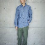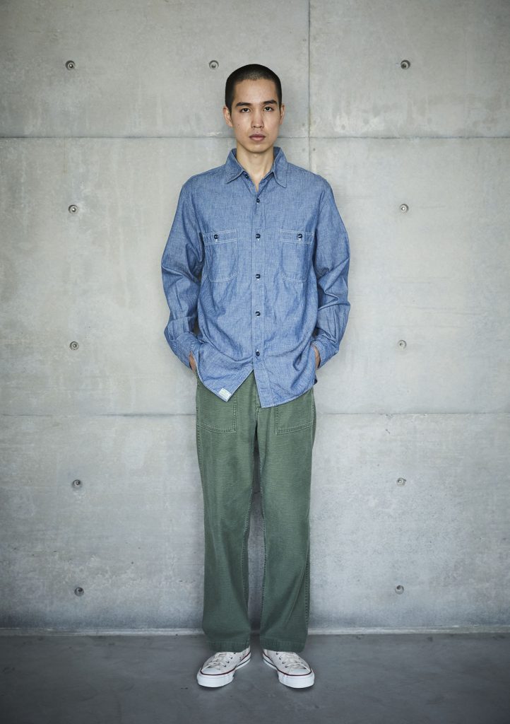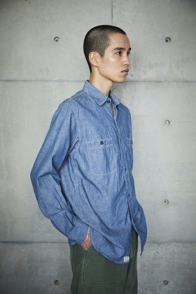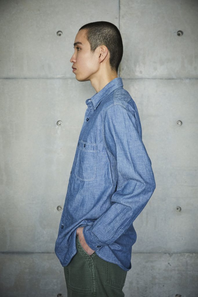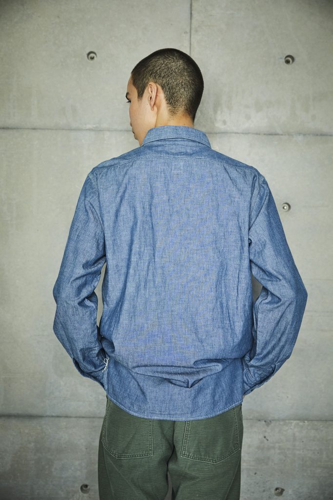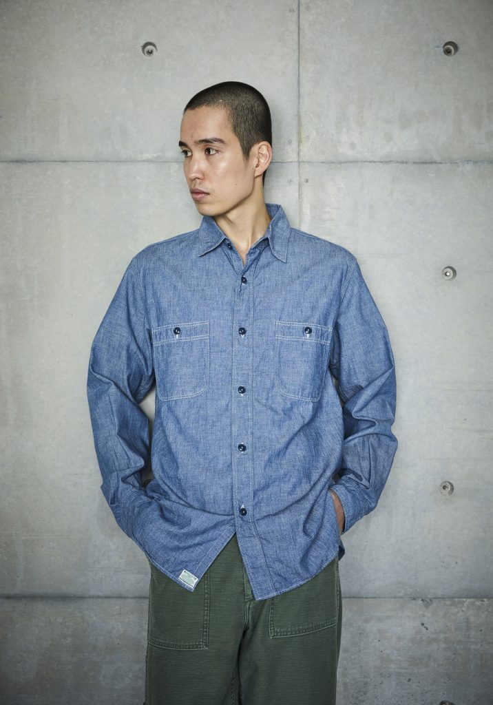 This is the first shirt ever planned by orSlow during the early stages of the brand's establishment. It draws inspiration from military work shirts from around the 1940s. The blue chambray, which is rope-dyed, fades to a lighter shade of blue with repeated wear, allowing you to experience the aging process. There are two types available: one with slim fit and triple-stitched lap seams (01-8070), and the other with relax fit and double-stitched lap seams (01-8270).