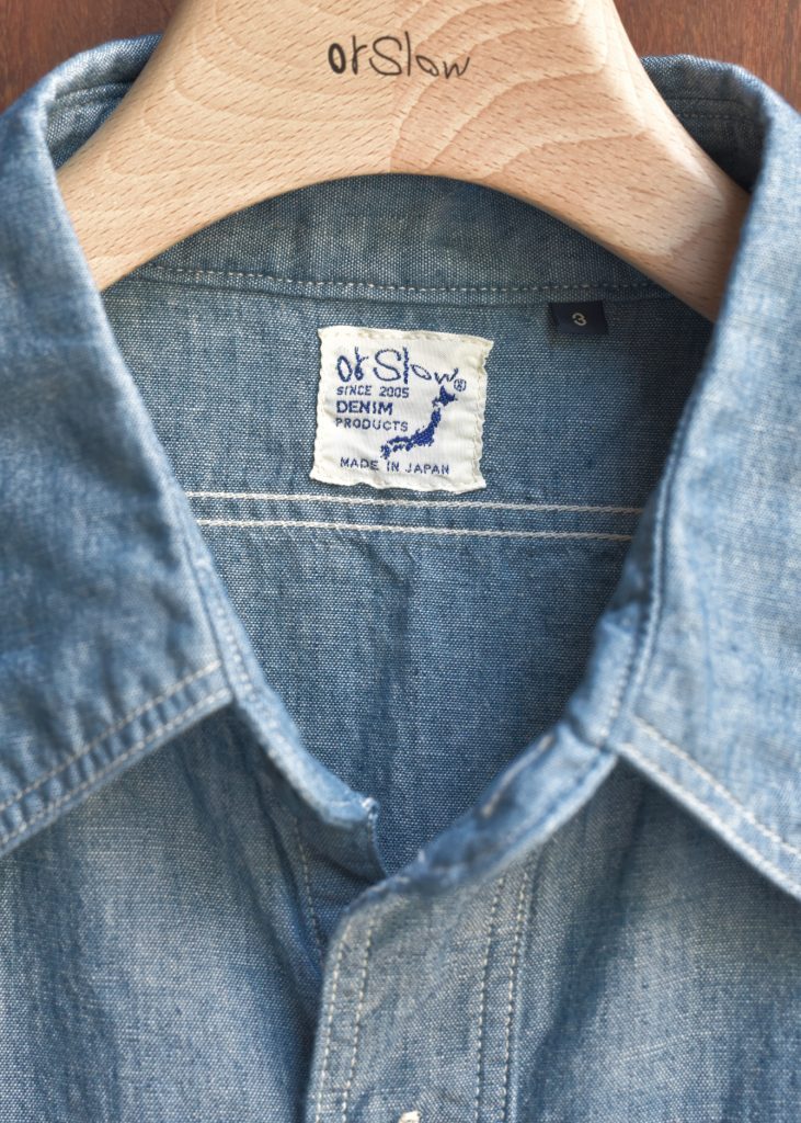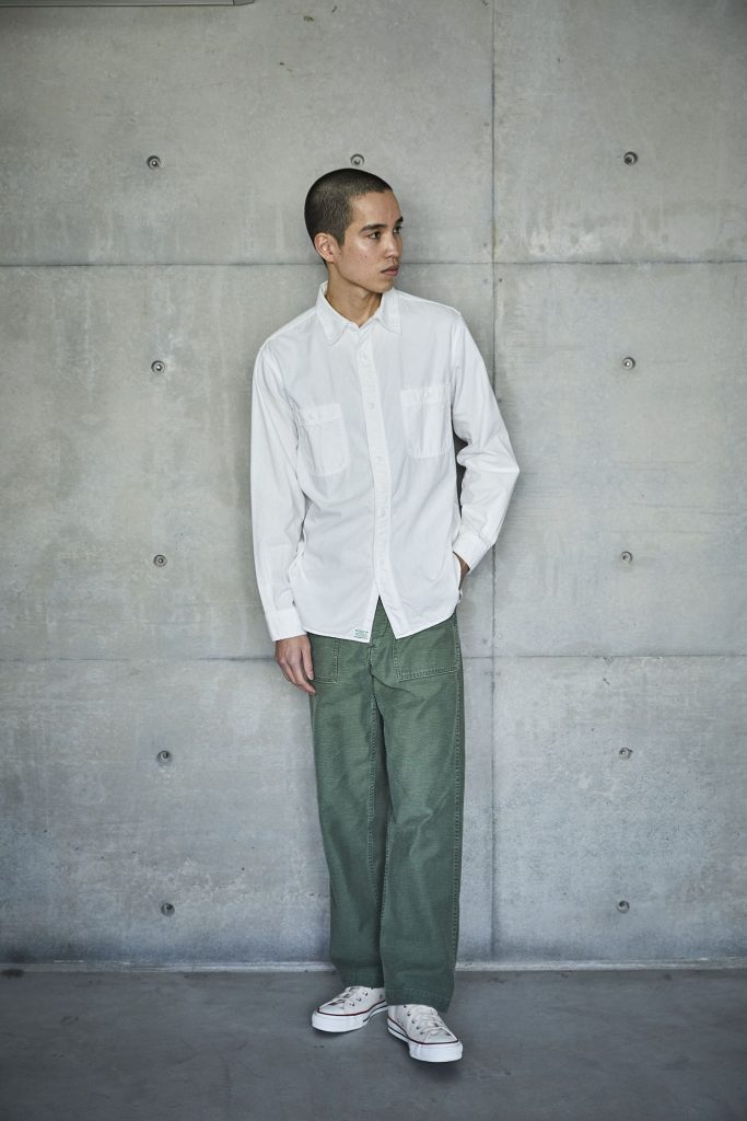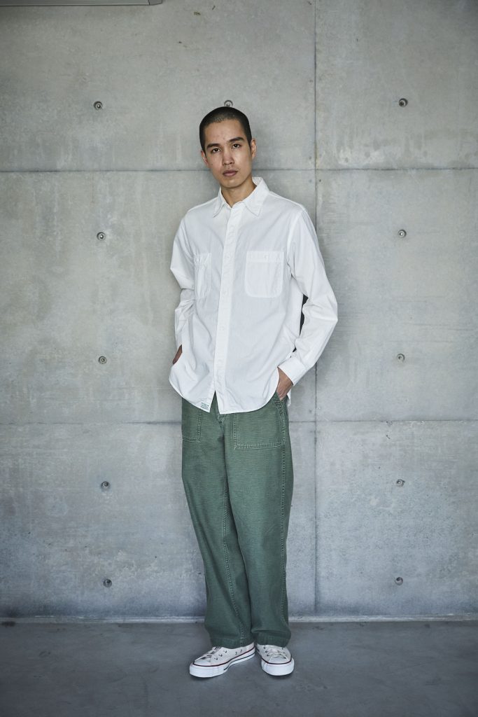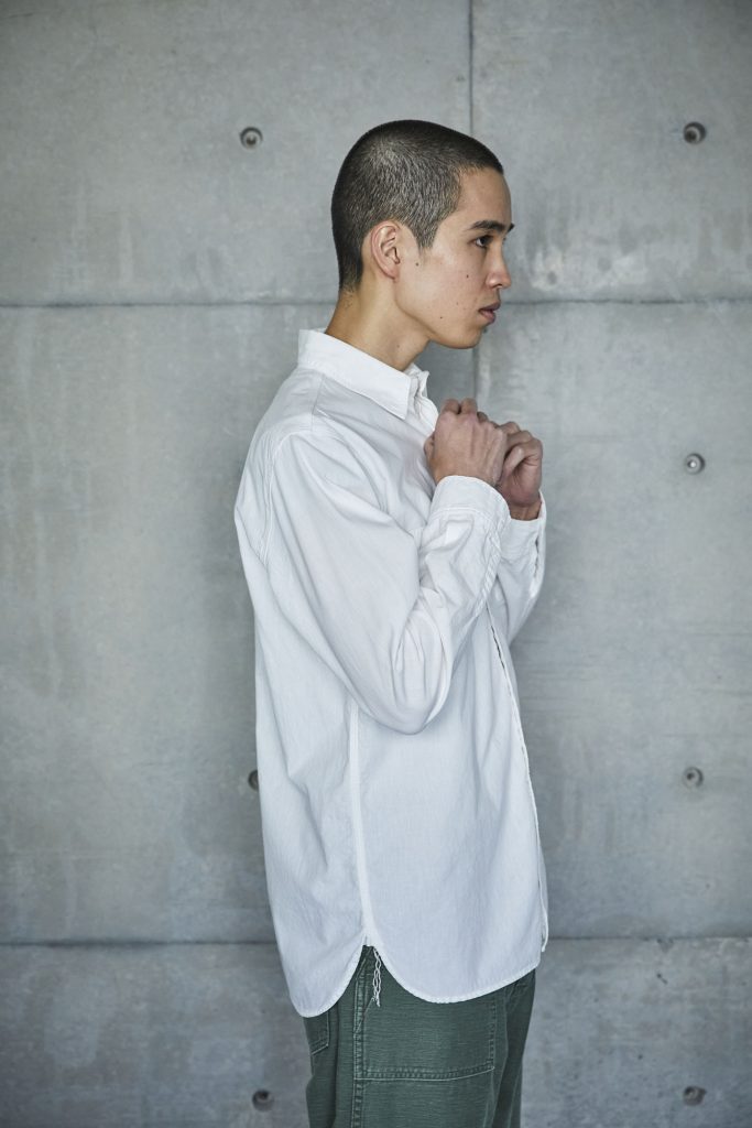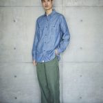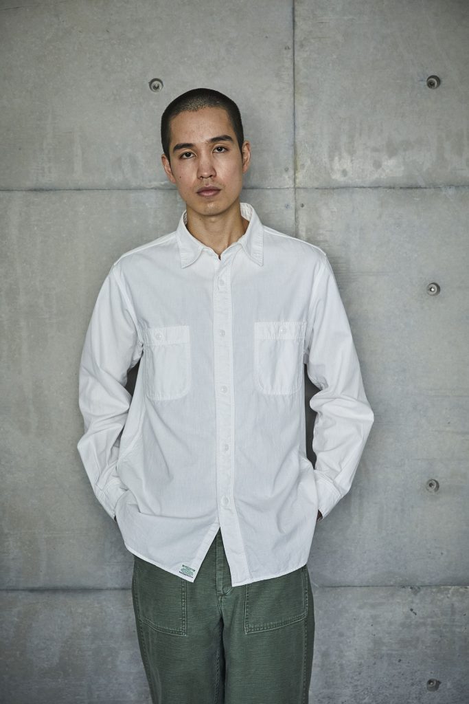 This is the first shirt ever planned by orSlow during the early stages of the brand's establishment. It draws inspiration from military work shirts from around the 1940s. The blue chambray, which is rope-dyed, fades to a lighter shade of blue with repeated wear, allowing you to experience the aging process. There are two types available: one with slim fit and triple-stitched lap seams (01-8070), and the other with relax fit and double-stitched lap seams (01-8270).