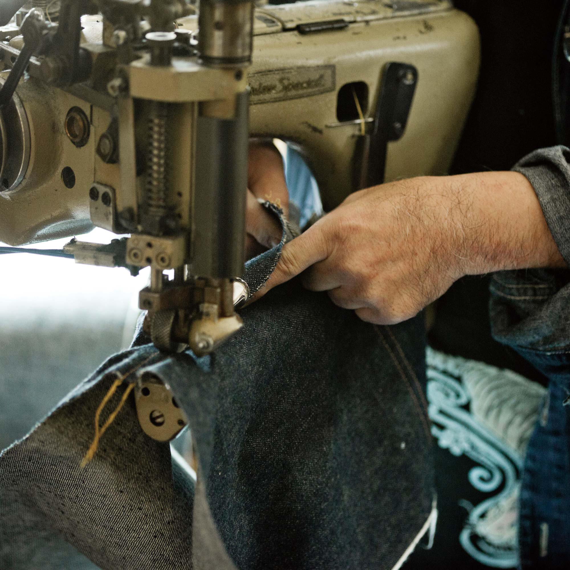もともとは一台のミシンでテーラーメイドとして仕立てられていたジーンズに