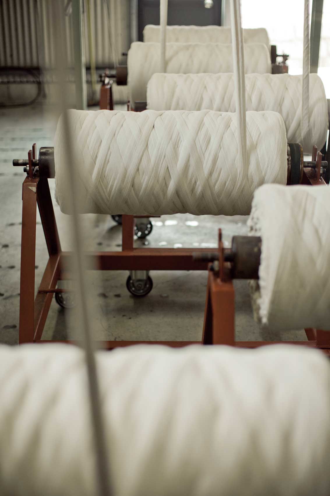 Like a metronome, one by one, the fabric is woven carefully and slowly as not to damage the twisted yarn. This is how our distinctive denim fabric is created.